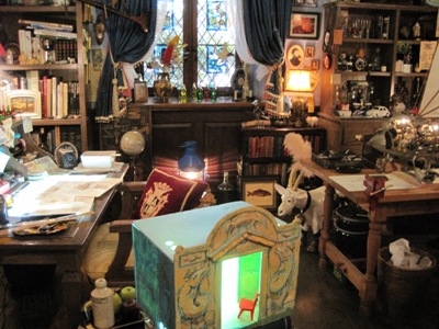 这个是其中一个房间,其实我们没搞太清这个到底是宫崎骏本人的房间呢还是作品主人公的房间。不过看它有书桌,上面还有手稿,书架上全都是书来看,可能是宫崎骏的房间。如果真的是他房间的话,他真的是生活在漫画里的人了!从这个房间就可以看出他丰富多彩的内心世界,也只有拥有这样内心世界的人才能画出那么多极富想象力的作品了~~