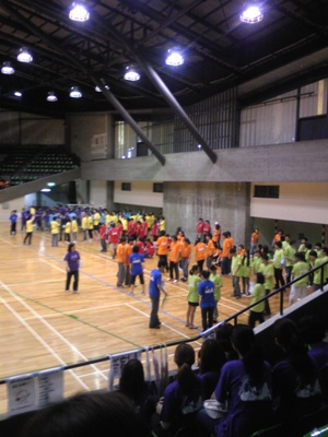 在久违的一个下雨天里,我们迎来了语言学校的运动会。我们学校就是这么会挑日子。。。据说去年的运动会更惨,台风暴雨。。。体育馆还离车站很远,大家到场馆的时候基本上已经都是半个落汤鸡了。。。而且之前听参加过去年的运动会的同学说,真的很傻很无聊,项目都很幼稚,就是趣味运动会。。。所以我刚开始就抱着混个出勤的心理~~