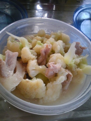 AND,我终于做了我思念已久的花菜肉片!花菜在这里还真的是很贵,一棵要300块,而且还不是一直都可以买到的。。。我好不容易下决心买了一棵,第一次烧的时候想不开,放了太多片栗粉搞得它太稠了,简直像芝麻糊。第二次终于烧得有模有样了!!很有家里的味道呢~