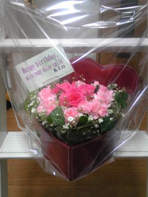 2月11号,日本建国纪念日的时候,正好是室友的生日,她男朋友还订了日本的花送过来哦~~