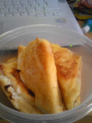 然后是星期六的时候心血来潮想做法式吐司了。。。于是网上稍微看了下食谱,挑了一个比较简单的就着手了。具体方法如下: