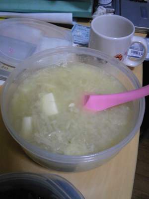 这是最近烧的菜,茄子肉片,黄瓜肉片和奶油浓汤,茄子肉片经过了一次巨咸的失败后,获得了成功,不过我们那个厨房真是小得让人没有烧饭的欲望,连个放砧板切东西的地方都没有。。。菜炒好了盛出来还只能放地上,作孽是作孽的来。。。