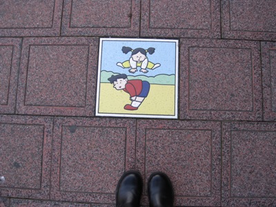 这些都是我住的地方周围的街景,公告板,人行道之类的,人行道每隔一点距离就会有这种代表运动的卡通地砖~